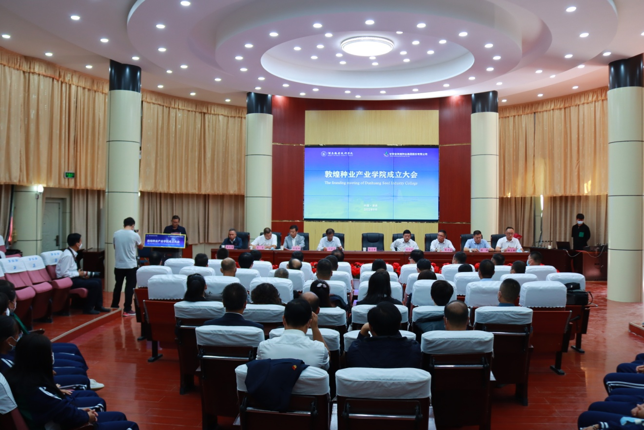 会议由学校党委委员、副校长王立智主持。学校党委书记、校长易志军,敦煌种业党委书记、董事长刘兴斌及敦煌种业集团公司部分高管、酒泉职业技术学院相关部门领导及生物工程学院师生200多人参加了成立大会。