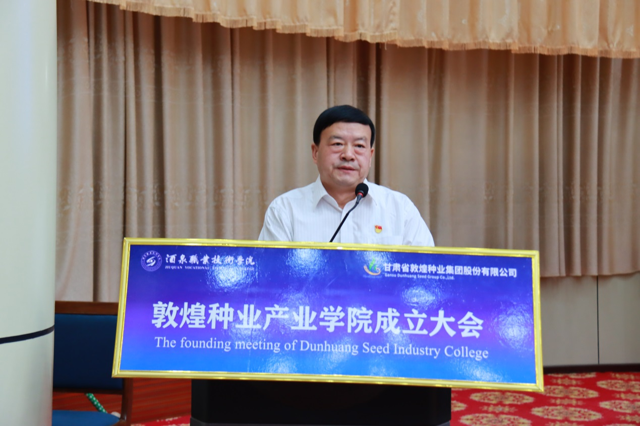 刘兴斌在致辞中强调,作为产业学院重要合作方,将以产业学院成立为新起点,全力以赴支持集团公司与酒泉职业技术学院全方位合作,保障产业学院在专业人才培养、专家师资团队建设、共建实习实训基地、种业及乡村振兴和社会服务等方面,积极研究国家政策、争取资金支持,推动学院建设发展向着高起点、高水平、高质量的目标前行,不断为农业现代化建设和民族种业振兴贡献新力量。