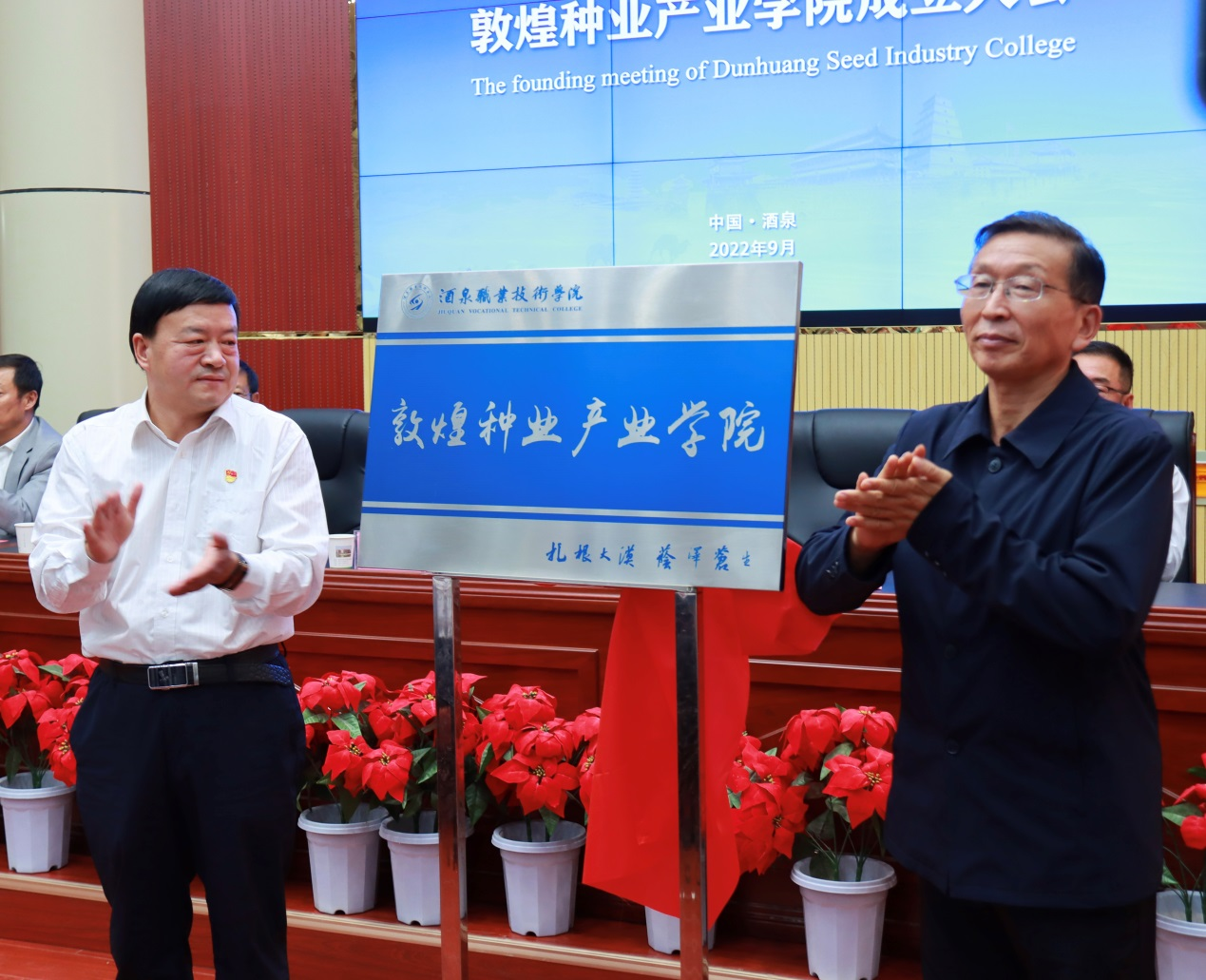 金秋九月,瓜果飘香。9月27日下午,在喜迎党的二十大胜利召开之际,由酒泉职业技术学院和甘肃省敦煌种业集团股份有限公司校企合作建设的敦煌种业产业学院成立大会在逸夫报告厅举行。