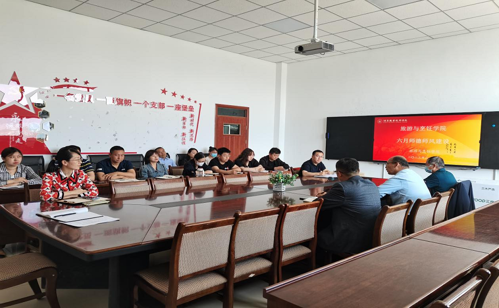 为进一步加强我院教师队伍师德师风和纪律作风建设,进一步增强教职工履职履责行为的规范意识,让每一名教职工知敬畏、守底线,6月7日下午,旅游与烹饪学院开展了师德师风教育主题活动,活动由旅游与烹饪学院党支部书记、院长杨洁主持,全体教职工参加了此次会议。