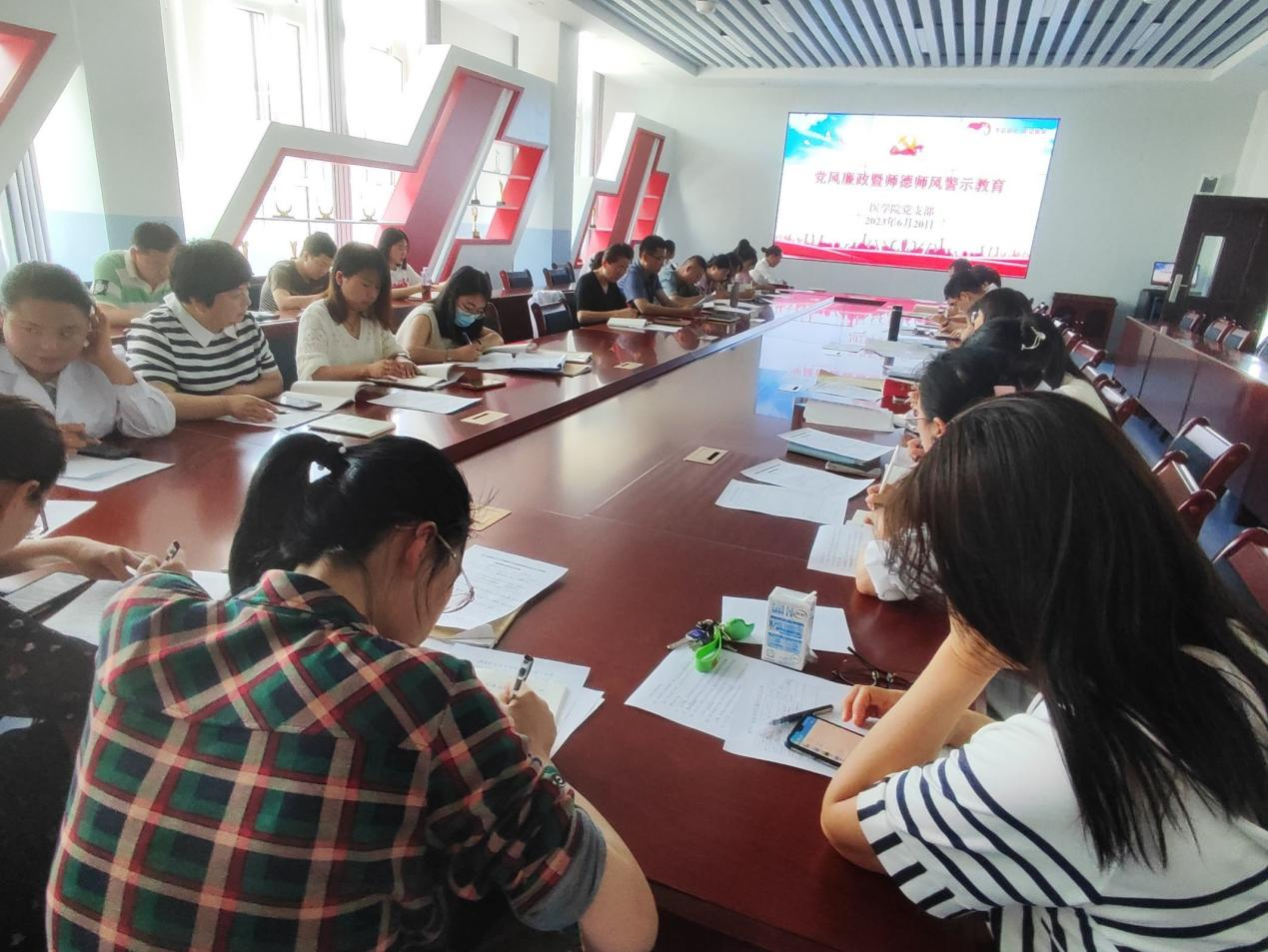 为深入贯彻党的二十大精神,特别是关于师德师风建设的重要精神,进一步加强医学院师德师风建设,提高教师的职业道德素养,提高人民群众的满意度。6月20日,医学院在弘远楼A501会议室召开党风廉政暨师德师风警示教育大会,会议由医学院党支部书记、院长范玉敏主持,全体教职工参加。