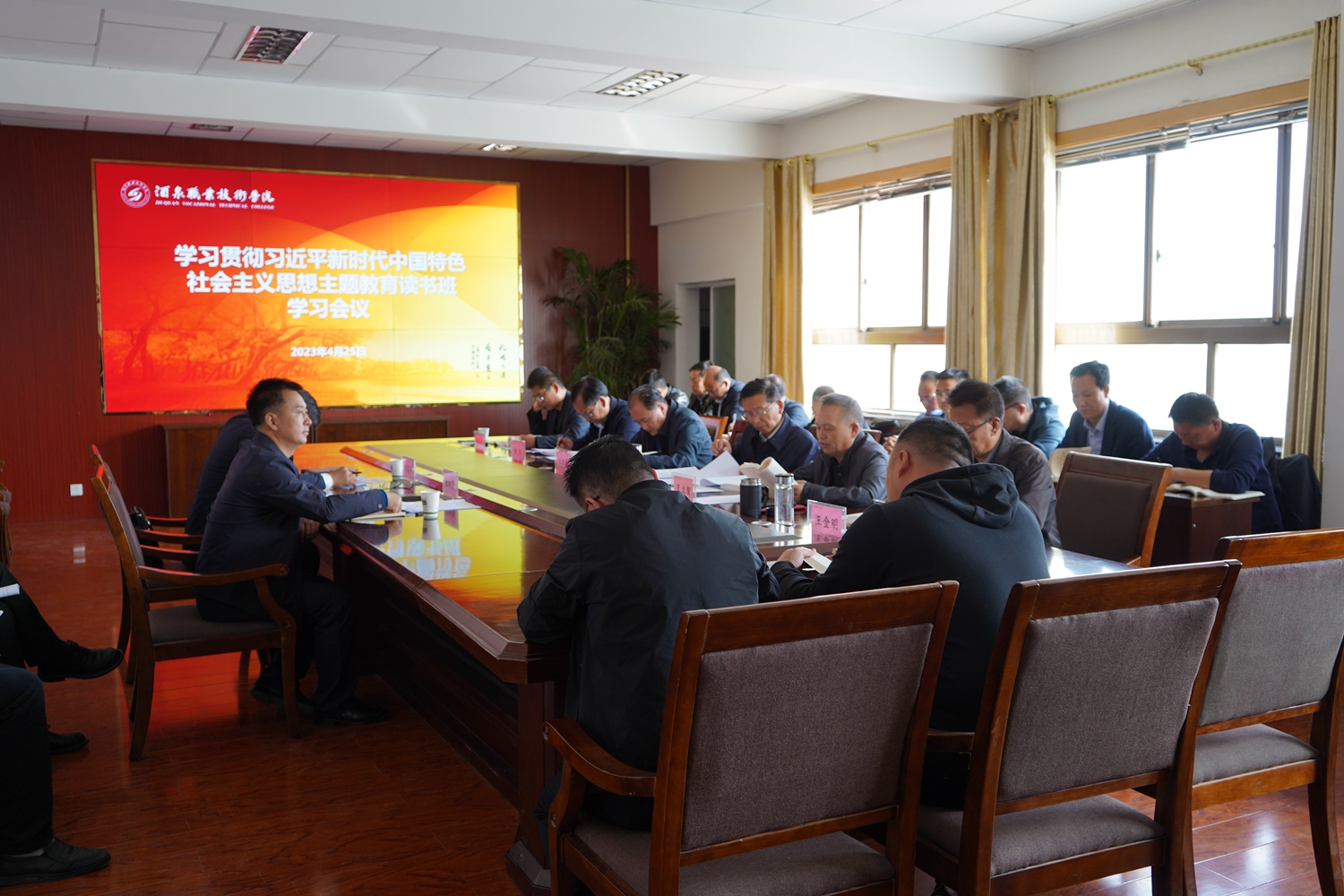4月25日,学习贯彻习近平新时代中国特色社会主义思想主题教育读书班学习暨产教融合共同体建设部署会议召开。市教育发展服务中心主任邹志平、市教育局副局长张树德出席会议。学校党委班子成员参加会议。党委书记、校长易志军主持会议。