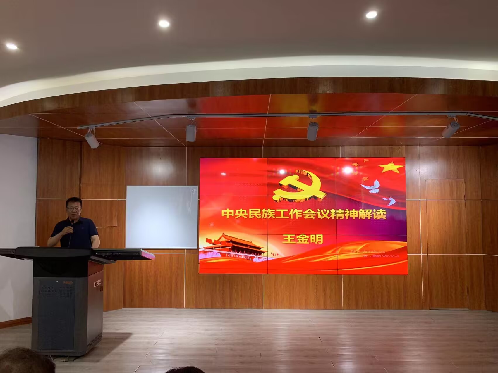 王金明从历次中央民族工作会议回顾、习近平关于加强和改进党的民族工作的重要思想的主要内涵、民族工作的酒职实践三方面进行了讲授。他全面回顾了我们党的民族工作光辉历程和历史成就,深入分析了当前党的民族工作面临的新形势,系统阐释了习近平总书记关于加强和改进民族工作重要思想的深刻内涵,介绍了我校少数民族学生基本情况和民族工作的特色成效,以及做好新时代党的民族工作的方法和路径。具有很强的政治性、思想性、理论性。