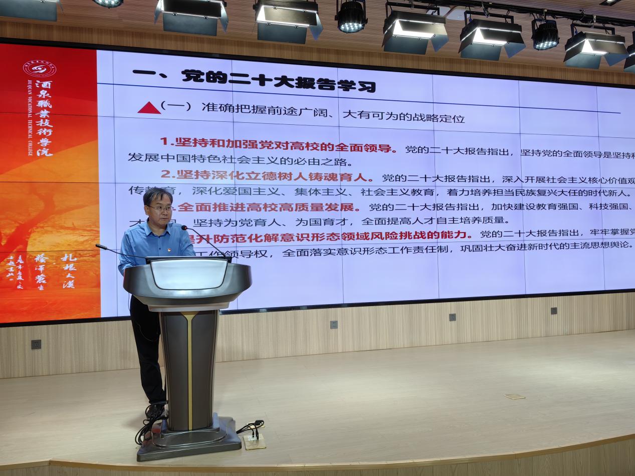 专题党课上,施荣同志以党的二十大报告学习为切入点,紧密围绕依法治校的重要意义、内涵和五个具体途径,和谐建校的理念和五大要素、依法治校与和谐建校的联系等四个方面,结合在主题教育集中学习、自学的心得体会、工作实际,深入浅出的讲述了如何推进依法治校、和谐建校,营造良好育人环境的路径。施荣同志强调要着力提升高校依法治校工作水平,要对标对表,正视我校在依法治校工作存在的法治工作理念不够深入、师生权益保护救济机制不够健全等差距和不足,找准短板弱项,进一步提高政治站位,强化责任担当,深化问题整改,一是明确依法治校的本质要求,贯彻落实党委领导下的校长负责制;二是明确依法治校理念,完善管理模式;三是建立大学章程制度体系,落实立德树人根本任务;四是加强宣传教育,提升师生法治观念和法律意识;五是推行校务公开,依法保护师生的合法权益。