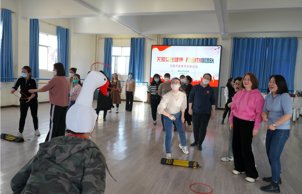 3月7日下午,教育与艺术学院在明德楼舞蹈练功厅组织女教职工开展了“关爱女性健康 凝聚巾帼力量”主题团建素质拓展活动。通过拓展活动,丰富了教职工的精神文化,提升了女性魅力,展示巾帼爱岗敬业、勇于担当、团结协作的精神风貌。