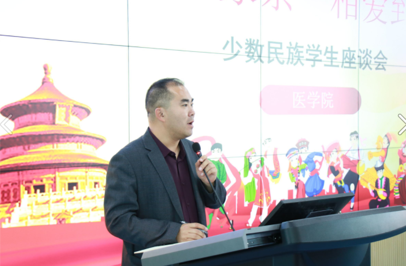 座谈会开始医学院党支部副书记段国萍介绍了当前国家、地方关于少数民族学生发展的相关政策以及少数民族地区社会经济发展状况,希望大家要深刻认识到当前经济发展、社会安定、个人成长等都是国家强盛的结果,鼓励大家进一步感党恩、听党话、跟党走,用实际行动铸牢中华民族共同体意识,不断牢固树立总体国家安全观,努力学习文化知识,锻炼实践动手能力,毕业后投身家乡发展建设洪流,让自己的青春在家乡的土壤中落地开花。