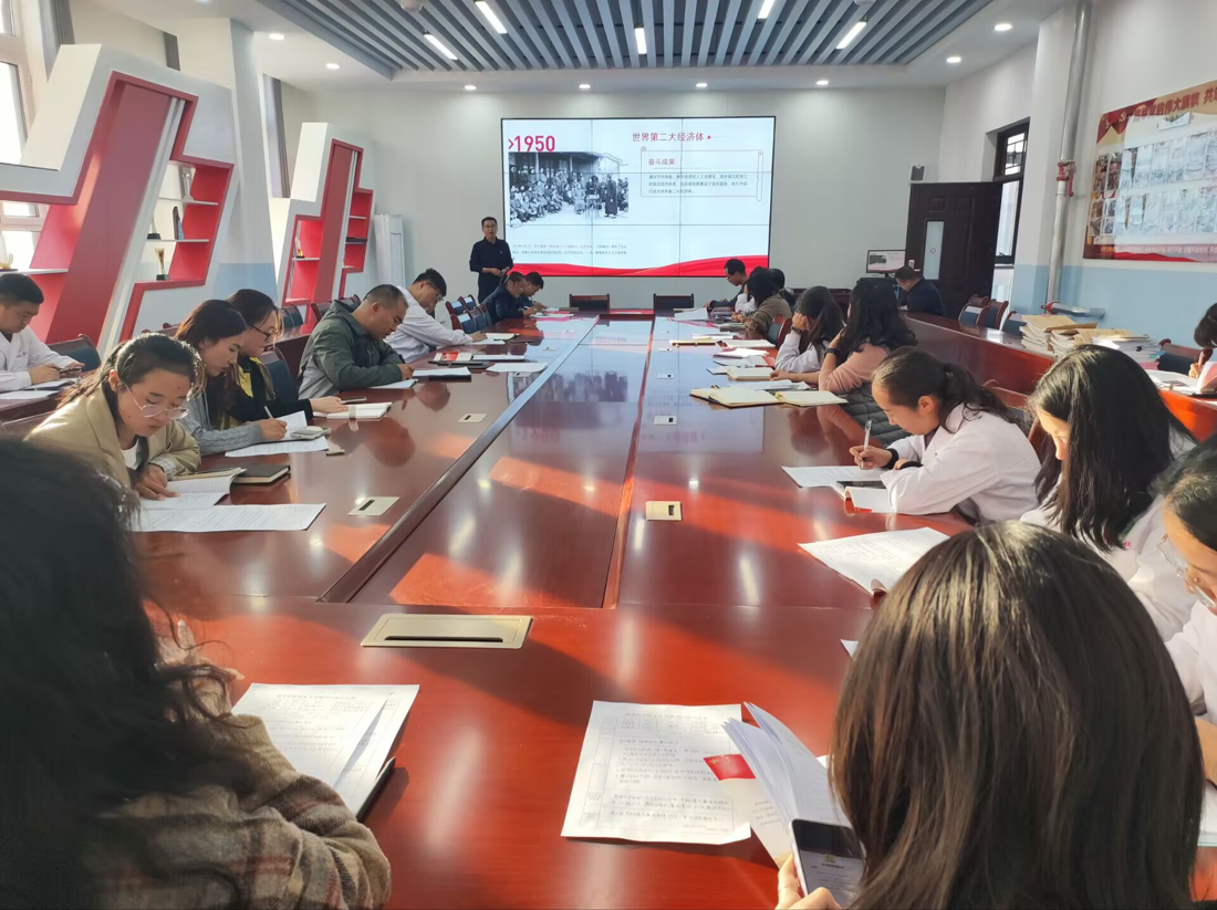 10月15日下午,医学院党支部书记、院长范玉敏以“回首峥嵘岁月,奋进未来可期”为题,为全体教职工讲授专题党课。全体党员与教职工齐聚一堂,共同回顾国家建设的艰辛历程,感悟发展成就背后的奉献与付出。范玉敏同志通过详实的历史案例和现实数据,引导大家从中汲取历史启示,明确时代担当,聚焦医学院的建设与发展,为全体教职工带来了一堂深刻的思想教育课。