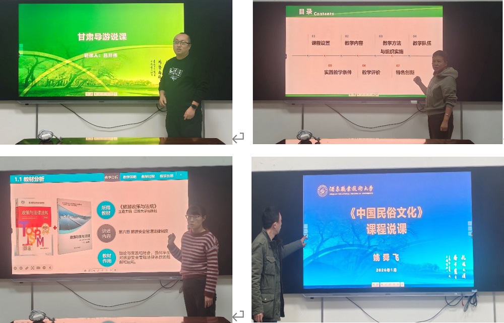 旅游管理系说课中,《甘肃导游》课程说课引入“VR虚拟导游实训系统”,让学生在虚拟场景中练习导游讲解;《旅游政策与法规》说课结合“文旅企业合规案例”设计教学内容,提升学生法律应用能力;《旅行社经营管理实务》课程说课融入“旅游电商运营”模块,对接行业数字化转型需求。