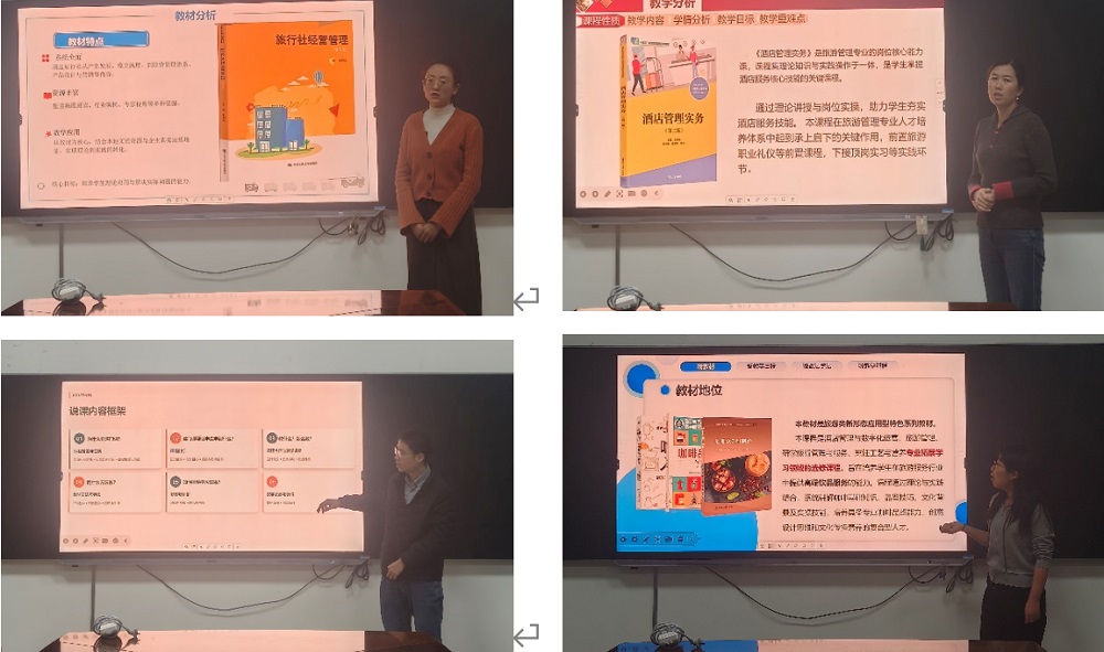 为检验培训成果转化效果,分享会第二阶段组织旅游管理、研学旅行管理与服务、酒店管理与数字化运营、烹饪工艺与营养、玉器设计与工艺教学系专业教师进行说课展示,教师们结合培训所学,聚焦“职业本科人才培养目标”“产教融合课程设计”“数字技术应用”等维度,呈现课程改革新思路。