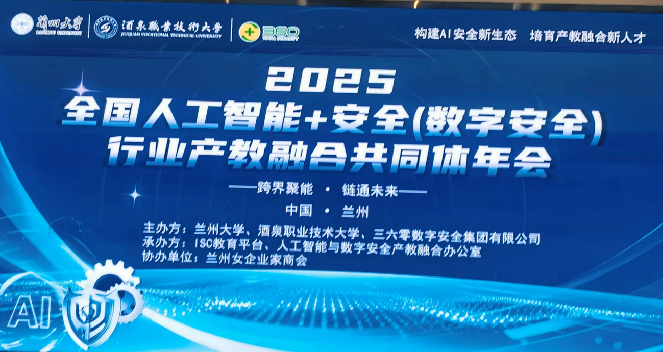 2025年11月28日,以“跨界聚能·链通未来--构建AI安全新生态,培育产教融合新人才”为主题的2025年全国人工智能+安全(数字安全)产教融合共同体年会在兰州大学召开。本次年会由兰州大学、酒泉职业技术大学、360数字安全集团联合主办,兰州女企业家商会协办,汇聚了政府部门、高校院所、行业企业、研究机构等多方力量,共商人工智能与数字安全领域产教融合发展大计,推动人才培养与产业发展深度融合。