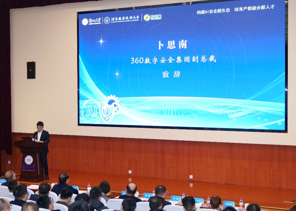 工业和信息化部网络安全产业发展中心相关负责人通过视频形式致辞,分析网络安全产业发展趋势与人才需求导向。360数字安全集团相关负责人则从企业视角,分享了AI安全领域的实践经验与合作愿景。
