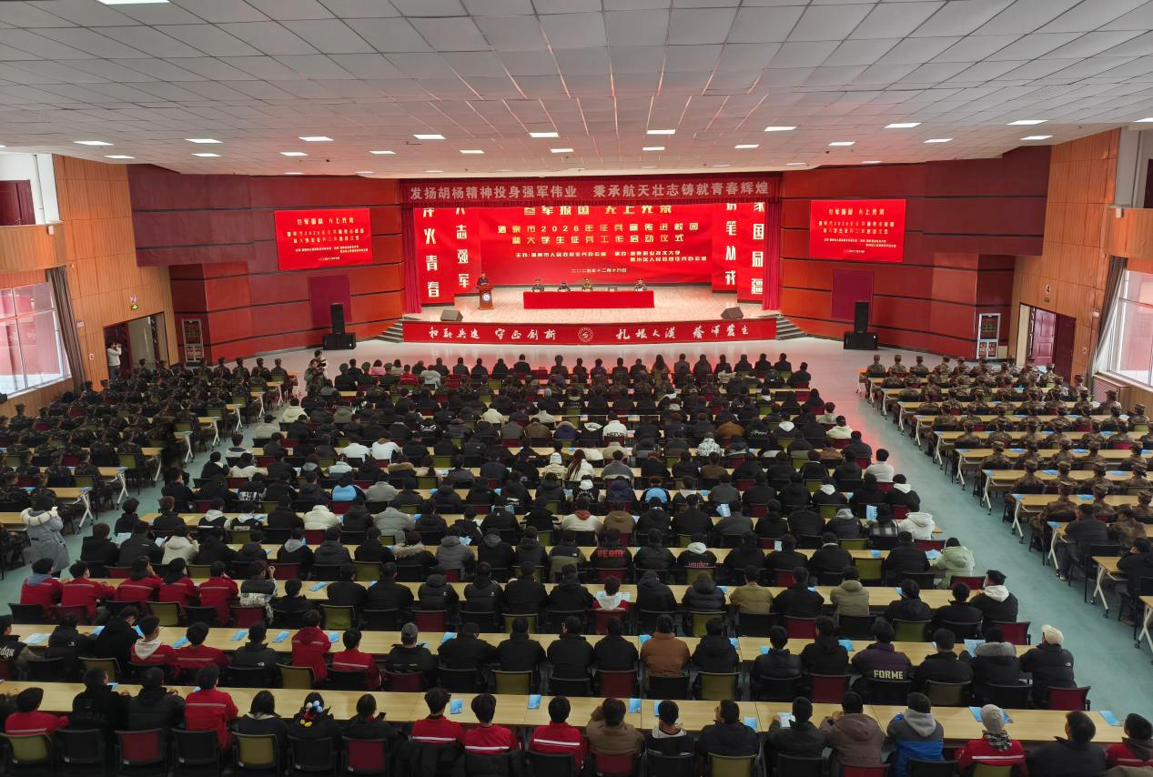 要闻快递 > 正文2025年12月19日下午,酒泉市2026年征兵宣传进校园暨大学生征兵工作启动仪式在酒泉职业技术大学胡杨活动中心举行。本次活动由酒泉市人民政府征兵办公室主办,酒泉职业技术大学、肃州区人民政府征兵办公室共同承办,旨在深入贯彻习近平强军思想,进一步激发广大青年学子投身国防、报效祖国的热情,为新时代国防和军队现代化建设输送高素质兵员。