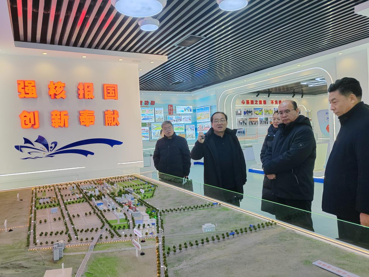 在核产业园管委会相关负责人陪同下,杨洁一行深入了解了核产业园“一轴、六区、多支点”的总体发展规划,以及核乏燃料后处理、核技术应用、装备制造等产业布局与建设进展。