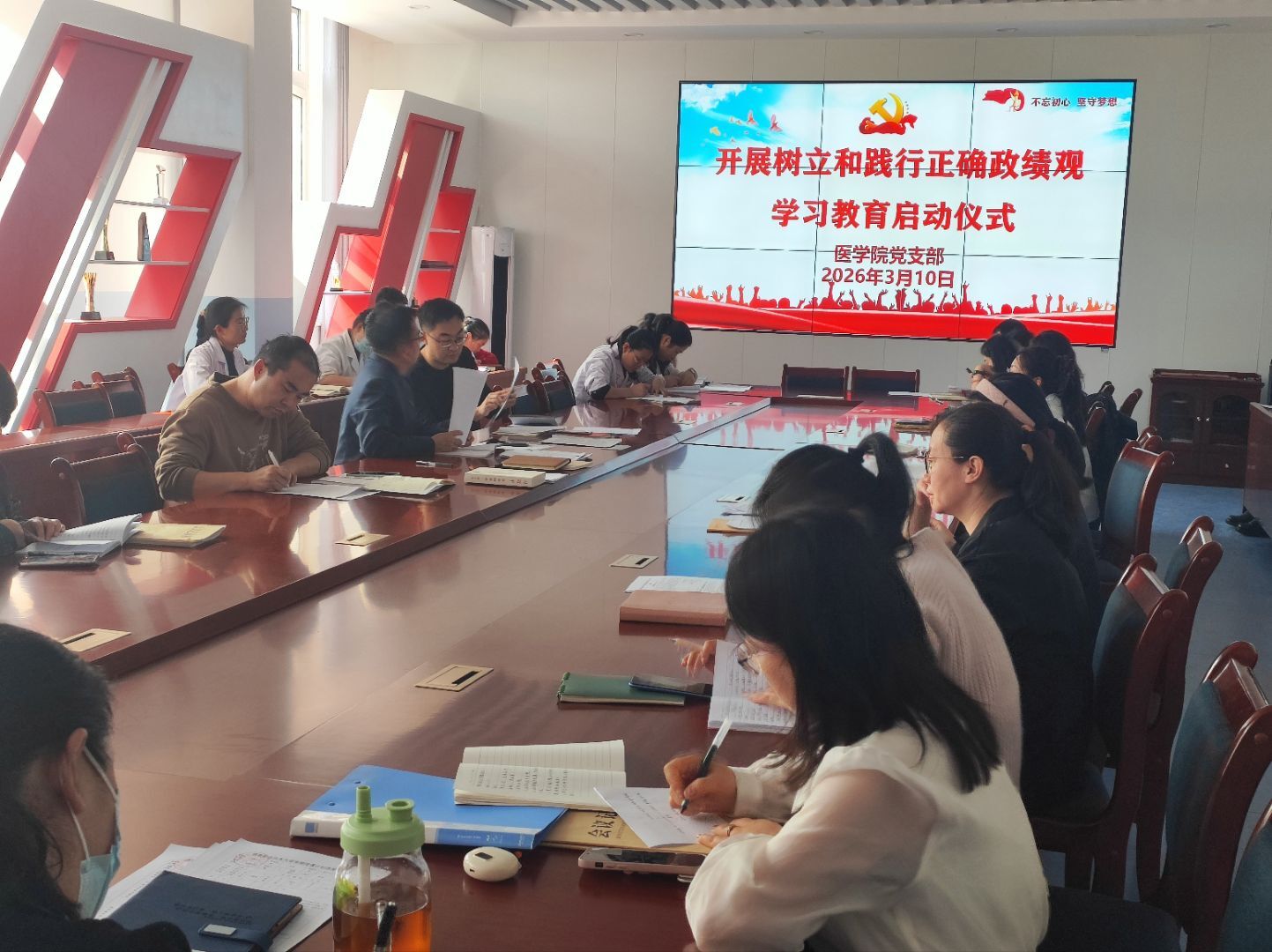 为深入贯彻落实党中央部署要求,扎实推动树立和践行正确政绩观学习教育走深走实,3月10日,医学院召开会议部署启动树立和践行正确政绩观学习教育。医学院党支部书记、院长范玉敏主持会议,全体教职工参加会议。